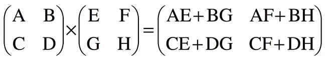 For 2x2 inputs, each term in the output is the sum of two products. No product is reused, but the individual terms are.