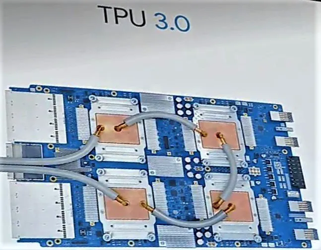 TPUs in production live in “pods”, which are big racks with lots and lots of compute power. Each pod holds 64 TPUv2 boards, for 11.5 petaflops.